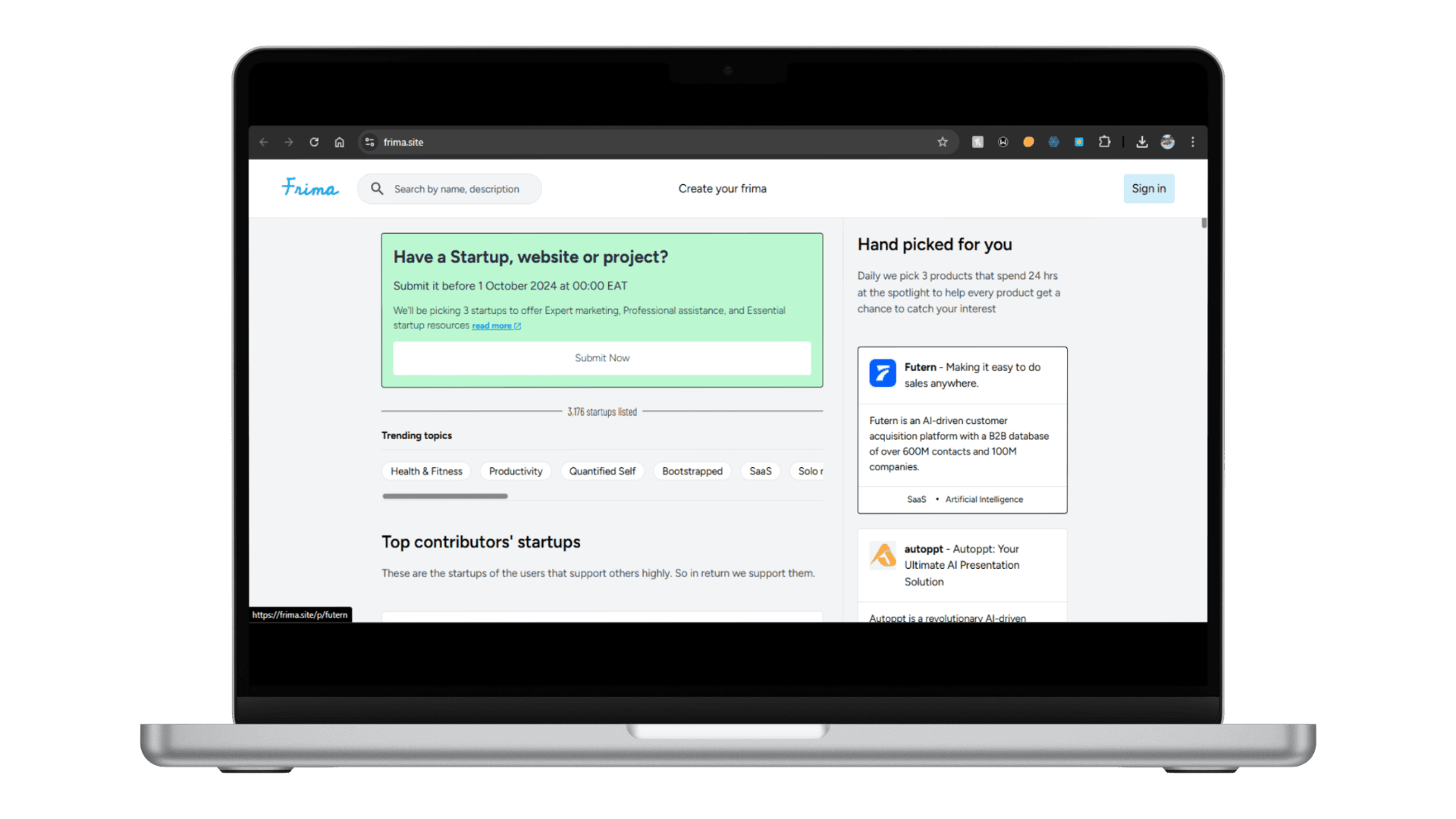 Frima helps all upcoming startups to get the recognition they deserve. You don't have to trash your startup just because the marketing is difficult. Frima is a community where the more you contribute to others' success the more we contribute to your success.